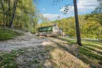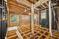 All- new flooring joists have been purchased and installed downstairs, setting the stage for your vision. If finished per the seller’s drawings, the home would include a large primary suite on the main level with a spacious walk- in closet, luxurious primary bath, a huge kitchen with island, and a formal dining room. The contemporary design features lots of windows overlooking beautiful trees and treed acreage, giving a true Gatlinburg- in- the- city feel.