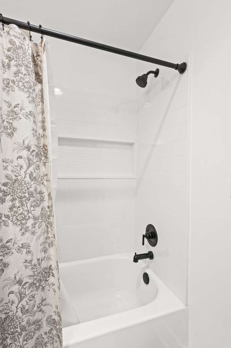 The full bathroom in the garage provides a space to clean up before coming into the home from yardwork or shopwork.