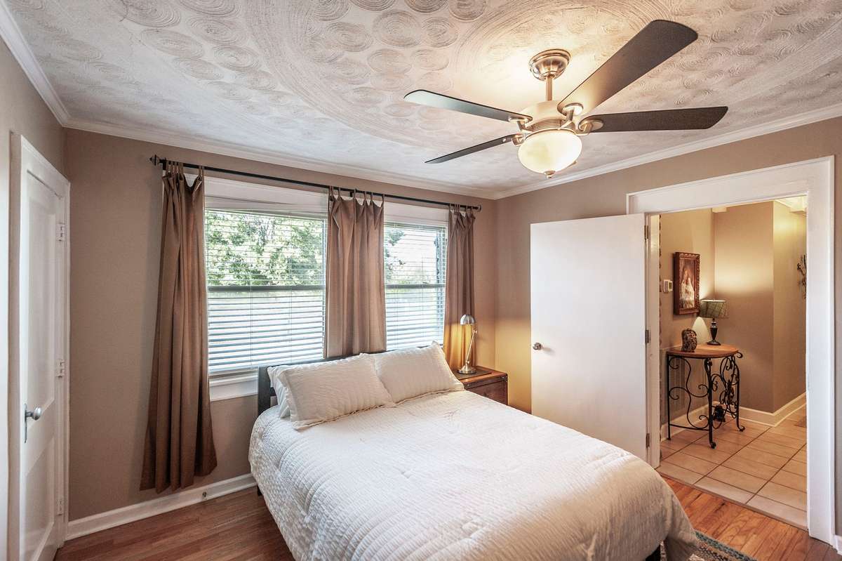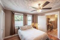 4th bedroom overlooking the pool with tiled floors, built in closets with tiled half bath!