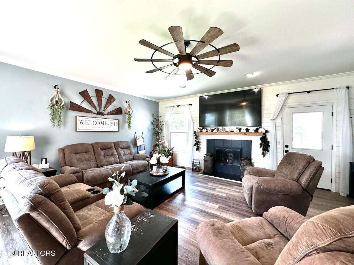 *** STUNNING LAKEFRONT RETREAT** * less than a mile from Hurricane Marina. Experience breathtaking views of Center Hill Lake from this gorgeous home, perfectly situated on a spacious level lot. Thoughtfully upgraded, this home offers modern comforts & elegant finishes throughout. Brand new windows & screens installed from Renewal by Anderson, which carry a transferrable lifetime warranty. The Gourmet Kitchen is a chef' s dream, featuring an Electric Cooktop on a Central Island, Oven, Convection Microwave, Refrigerator & Dishwasher. The luxurious Primary Suite boasts a bathroom w/ Double Vanities, large glass- enclosed tiled Shower and an expansive Walk- In Closet. 2 Guest Bedrooms upstairs share a Full Bath. The finished Basement provides endless possibilities - ideal for a Man- Cave w/ an extra room used as a Hobby Room or additional storage. Car enthusiasts & hobbyists will love not only the attached 2- Car Garage, but also the detached 4- Car Garage for your Boat or RV. Don' t miss the opportunity to own this stunning lake home w/ unparalleled views & exceptional amenities! Check out Ariel Video in the Link' s Section below.
