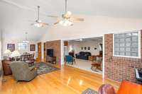 The backyard is a true retreat with total privacy, a serene pond, and a cozy firepit—perfect for relaxing or entertaining. A large turnaround driveway and 3- car carport provide ample parking and versatile outdoor space for gatherings . Inside, the owner’s suite features a stunning, newly renovated bathroom that’s a must- see. The secondary bathroom has also been tastefully updated. You' ll find plenty of storage and a workshop area in the spacious unfinished basement.
