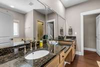 Upstairs, the primary suite offers a serene escape with trayed ceilings, a walk- in closet, dual vanities, a jetted tub, and a striking stone walk- in shower. A built- in makeup vanity with seating adds a touch of everyday luxury. The additional two bedrooms are equally spacious, each with its own ensuite bathroom to ensure comfort and privacy for family or guests.