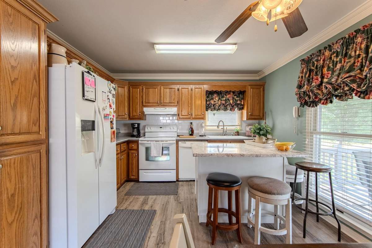 Welcome Home to Southwood Estates! Located near the school in a quiet, kid- friendly subdivision where bikes & evening strolls rule, you' ll find this charming 3 BR, 2 BA home that has so much to offer! Step inside to a spacious living room w/ built- ins & a cozy gas fireplace. The eat- in kitchen features an island ideal for casual dining & gatherings, plus all kitchen appliances. The primary suite is a true retreat w/ a walk- in closet, whirlpool tub, sep. shower, & double vanities! The bonus sunroom is perfect for relaxing & entertaining. Enjoy peace of mind with recent updates including a new roof, new water heater, & some updated flooring. A partial basement provides great storage or workspace flexibility. Outdoors, the covered rear patio is perfect for cookouts & enjoying peaceful evenings. Need space for your camper or hobbies? You’ll love the 20x40 shop! With great curb appeal, a family- friendly layout, and a wonderful neighborhood vibe... this home truly has it all. Don' t miss out!