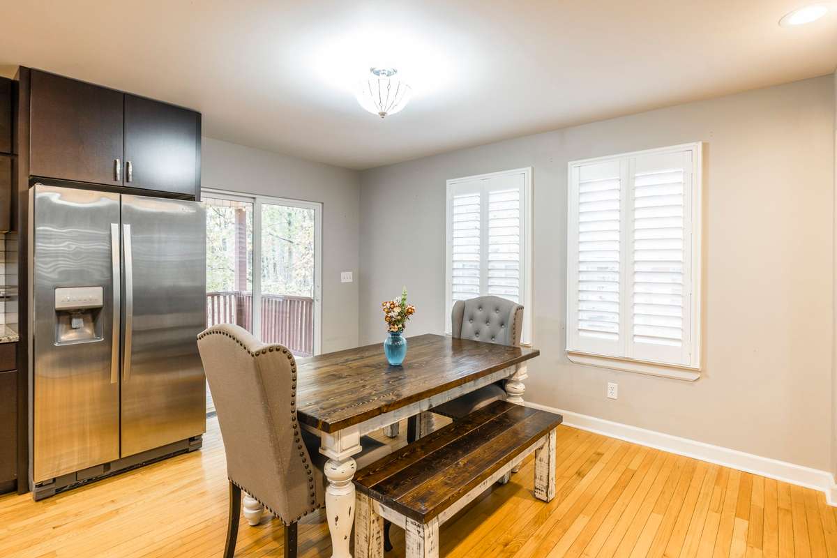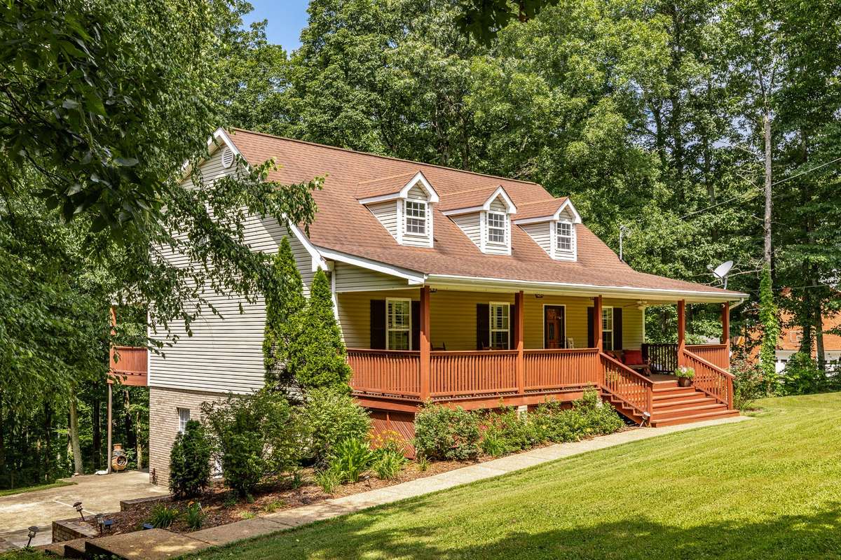 Additional highlights include two new HVAC units, peaceful wooded surroundings, and a move- in- ready design.