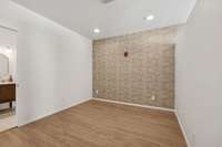 The bathroom has been fully renovated with a marble- top double vanity, designer tile, and new plumbing fixtures. The kitchen features stainless steel appliances, tiled backsplash, and includes the refrigerator, washer, and dryer. High ceilings, fresh paint, and custom wallpaper accents complete this move- in ready home. This property can go 100% Financing with no PMI. Ask us for details.