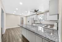 Welcome to this charming, move- in- ready home nestled among large, mature trees that offer plenty of shade and a peaceful yard for the whole family to enjoy. Inside, you’ll love the freshly painted interior and remodeled kitchen featuring granite countertops, a large island, and modern finishes—perfect for family meals and gatherings.