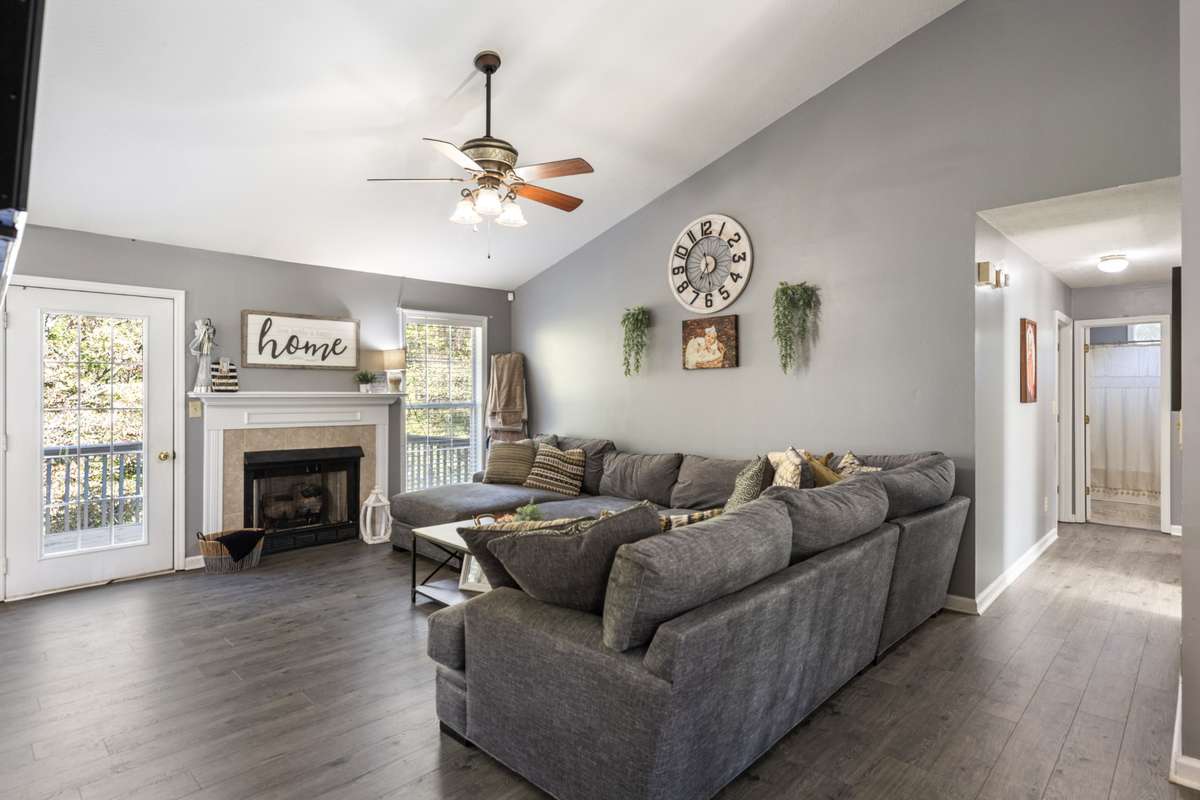 The main floor includes 3 bedrooms and 2 baths ( including the Primary Bedroom w/ full bath) , kitchen w/ formal dining room, a breakfast room that flows into the family room ( with gas fireplace) that both have large windows overlooking the 2nd floor deck and secluded backyard.