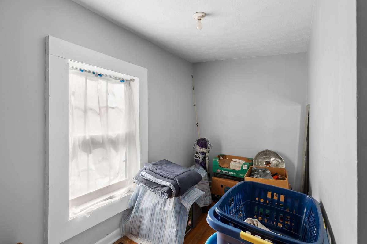 Large laundry room with separate mud room. Dryer remains