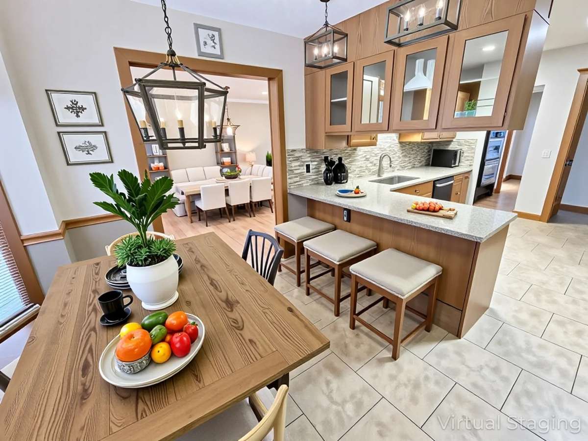 You’ll love the large dining room, breakfast nook, and kitchen bar seating—perfect for family meals and entertaining. Virtually Staged Photo for Inspiration Only and to Showcase How Space Can Be Used and Furnished.