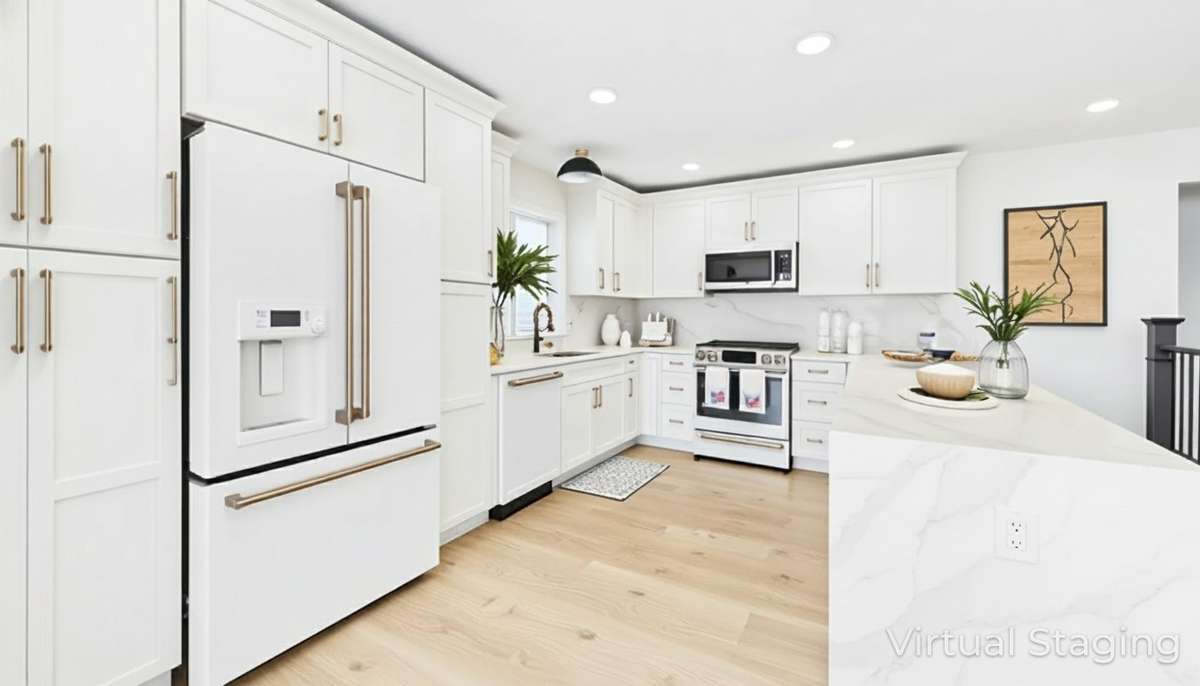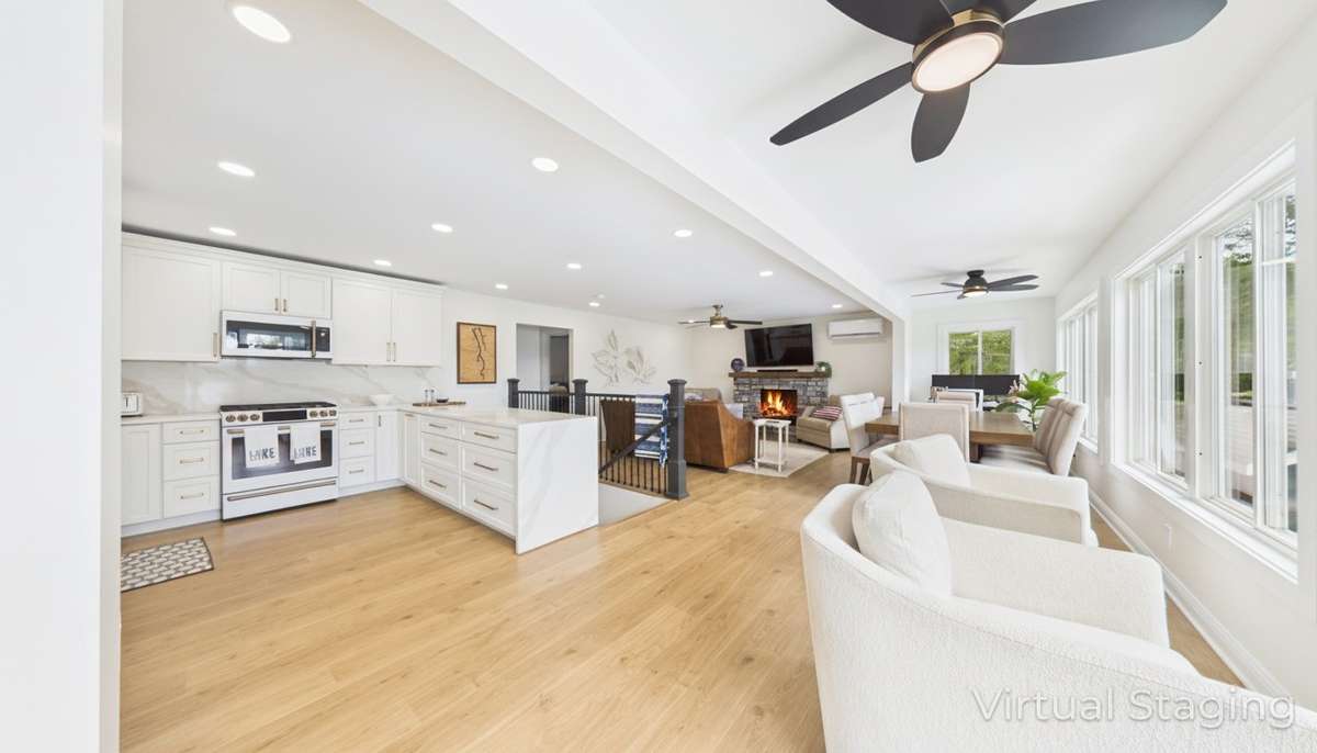 As you approach this inviting residence, you' re greeted by the new shake vinyl siding that wraps the home in elegance. Step inside to discover a completely revamped interior, boasting all- new custom kitchen cabinets, state- of- the- art appliances, and a sophisticated aesthetic that carries throughout the entire home. Both bathrooms have been fully renovated, showcasing modern fixtures and finishes that ensure both comfort and style.