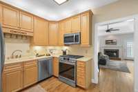 Highly sought after one- level townhome in the prestigious Georgetown Square. Beautifully renovated with new oak flooring, new carpet, completely re- painted, all new light fixtures, and new stainless steel appliances including a 5- burner gas range! All furniture is available for purchase, making this townhouse turn- key and ready for you!