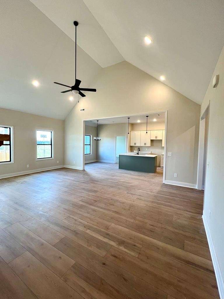 Step inside to a welcoming entryway with a convenient coat closet. The open- concept living room and kitchen flow together seamlessly, highlighted by a stunning floor- to- ceiling fireplace and durable LVP plank flooring throughout the living area, kitchen, and hallway. The modern kitchen features quartz countertops, an island with extra seating, and a dining area that overlooks the backyard. This split- bedroom floor plan offers privacy. The master suite boasts tray ceilings, two walk- in closets, and a luxurious bath complete with a soaking tub, separate shower, and double vanities. 4 Bedrooms + A large bonus room with full bath + closet( or 5th bedroom) . Enjoy your mornings or unwind in the evenings on the covered back porch, offering peaceful views and a touch of nature.