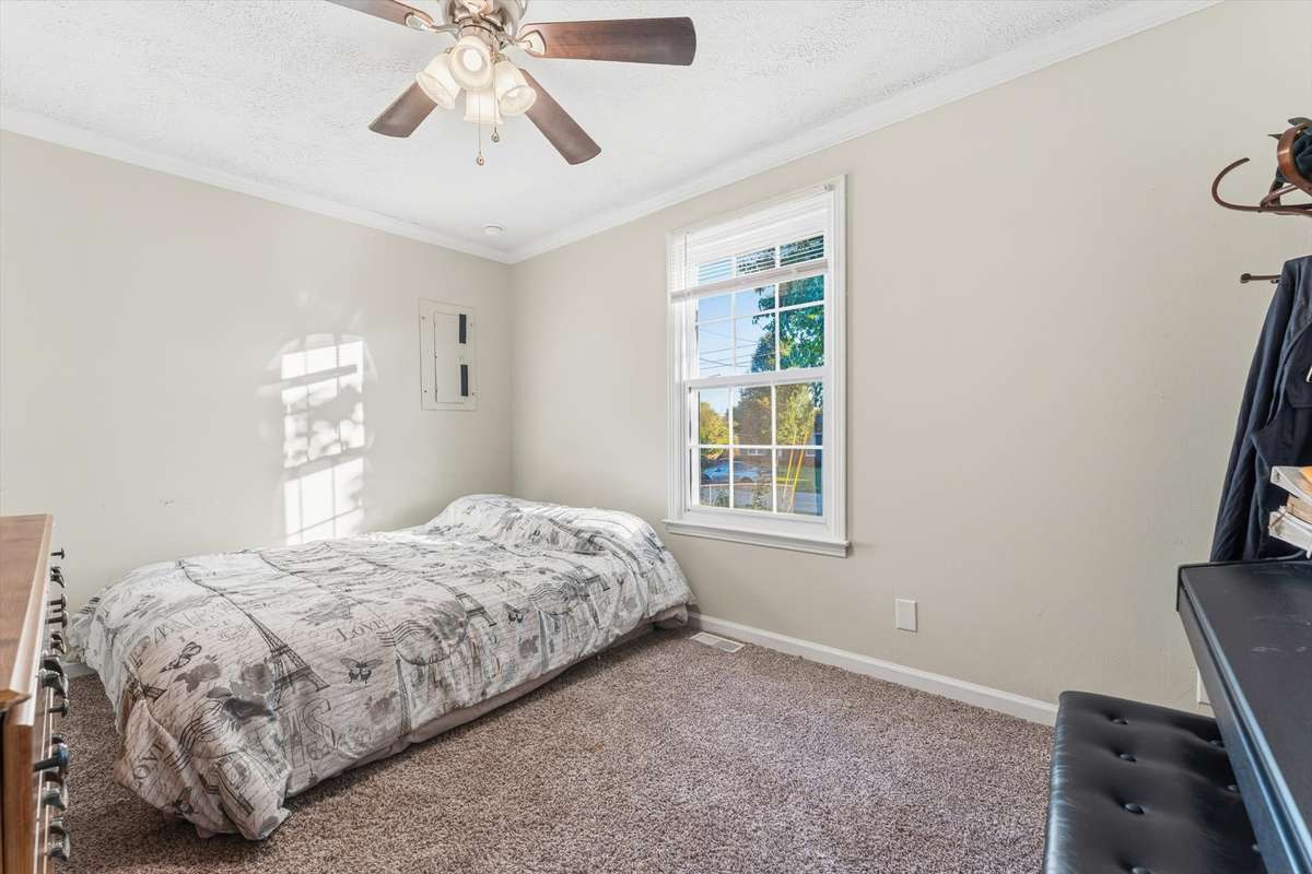Outside, you' ll love the fully fenced backyard, ideal for kids, pets, gardening, or relaxing in privacy. But the real bonus? A 16x18 storage building with a roll- up door, electricity, and built- in shelving – perfect for a workshop, hobby space, or extra storage.