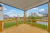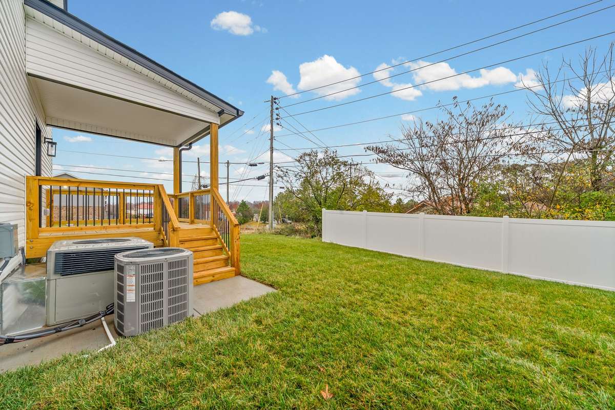 The primary suite boasts a tiled walk- in shower with a built- in bench, paired with sleek fixtures and high- end finishes throughout the home. We' ve added a custom touch. " Clarksville Closets" will be designing a custom Master closet and Kitchen Pantry. Step outside to a covered deck, ideal for morning coffee or entertaining year- round.
