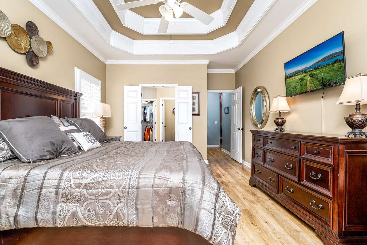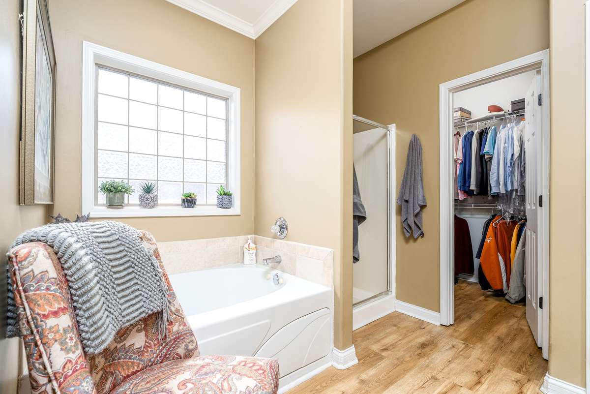 Lovely corner lot in the desirable neighborhood of Crowne Pointe offers up a fabulous all brick beauty complete with a fenced in larger back yard w/ in ground pool- an attraction to anyone that enjoys swimming and outdoor living. The home is all one story w/ oversized bonus room above the garage. Step inside to class, character and warmth and take in rich tones of real hardwood flooring, crown molding, soaring ceilings and an open floor plan . The updated and modern custom kitchen w/ maple cabinets and tons of granite counter tops is a chef' s dream. The oven is electric but there is a gas valve present behind the stove that can be reconnected. A kitchen nook is perfect for breakfast time and a formal dining room is offered for special occasion. The master bedroom has a grand feel w/ lovely trey ceiling and bay window w/ views of the pool complimented by the ensuite w/ separate tub and shower plus new LVP flooring. The secondary bedrooms are opposite of the home and shared bath is accessible to both. Don' t miss the upstairs bonus room. It is currently being used as entertainment with a full size pool table ( can remain) . Room is so spacious and there is opportunity to add a bath if needed. Pool is 7 years old.