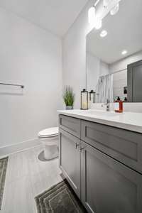 Meticulously designed with a modern California- contemporary aesthetic, the open- concept floor plan is filled with natural light and premium finishes. Guests rave about the chef’s kitchen featuring a dual- fuel range, oversized island, and ample cabinetry. The luxurious primary suite, lower- level media lounge with theater seating, and high- efficiency systems provide a seamless blend of comfort and sophistication. Other highlights include quartz countertops, LVT flooring, tankless water heater, LED lighting, and abundant parking.