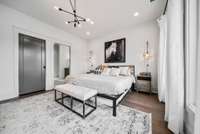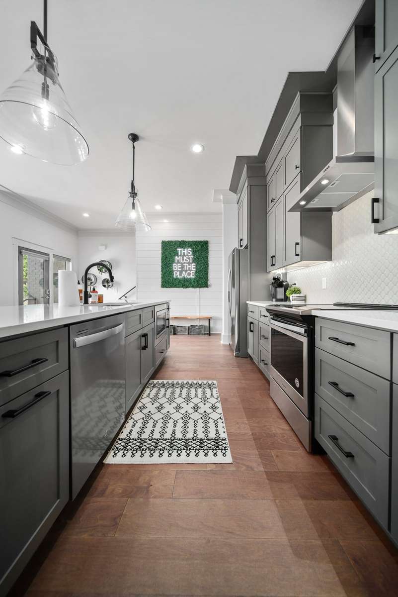Meticulously designed with a modern California- contemporary aesthetic, the open- concept floor plan is filled with natural light and premium finishes. Guests rave about the chef’s kitchen featuring a dual- fuel range, oversized island, and ample cabinetry. The luxurious primary suite, lower- level media lounge with theater seating, and high- efficiency systems provide a seamless blend of comfort and sophistication. Other highlights include quartz countertops, LVT flooring, tankless water heater, LED lighting, and abundant parking.