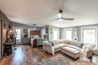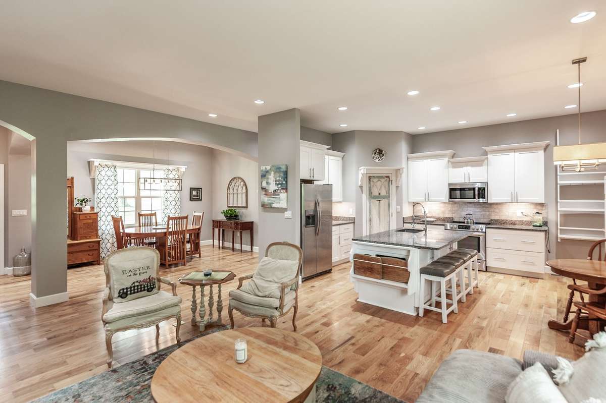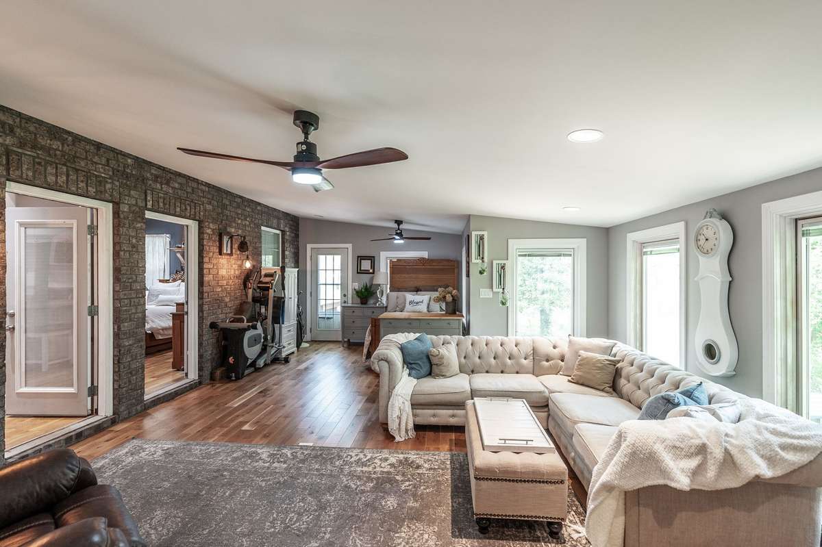 If you’ve been searching for a quality- built home on acreage with a 40’x40’ accessory building, this all- brick beauty is it! Featuring a 30- year roof, 5” hardwood plank flooring, and tile in all wet areas, this home combines craftsmanship with comfort. The open- concept great room, kitchen, and dining area create the perfect space for entertaining, while the main- level bonus room captures panoramic farm views.