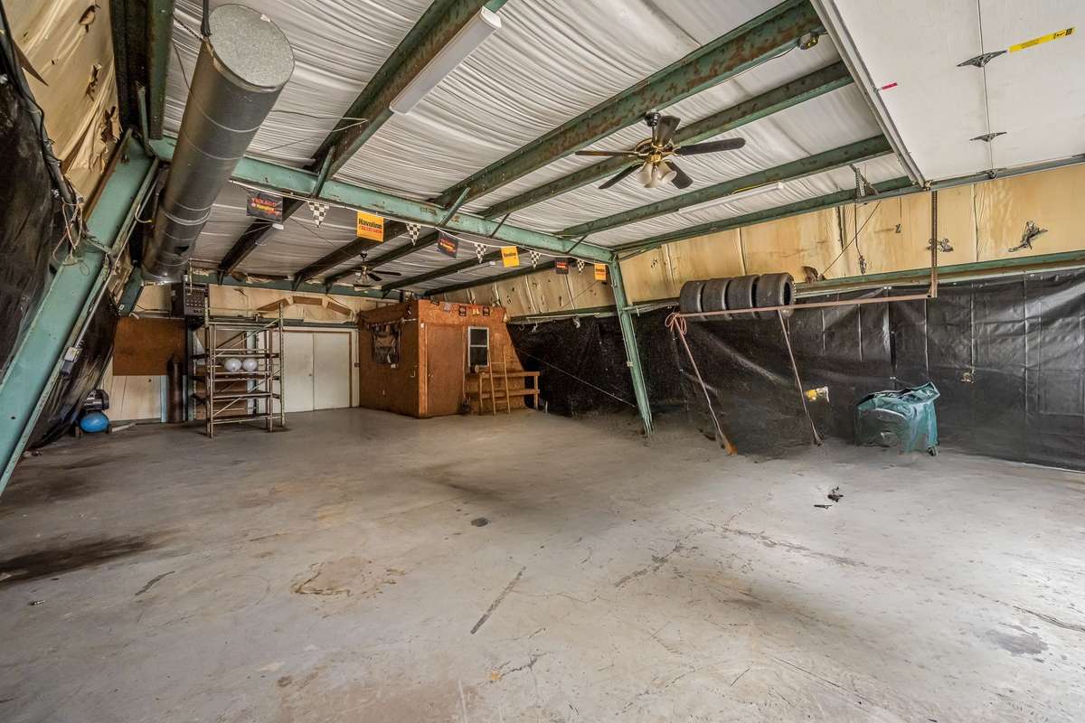 A connected 50x60 back shop—once home to a local race team—includes 2 roll- up doors, a full bathroom, and two car lifts, making it an ideal space for high- end automotive projects, a private collection, or conversion into a showroom or luxury hobby space.