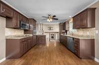 Step into refined country living with this stunning split- level estate, masterfully remodeled and set on A 40- foot- wide concrete entrance and expansive paved drive provide impressive curb appeal and easy access for trailers, RVs, or multiple vehicles.