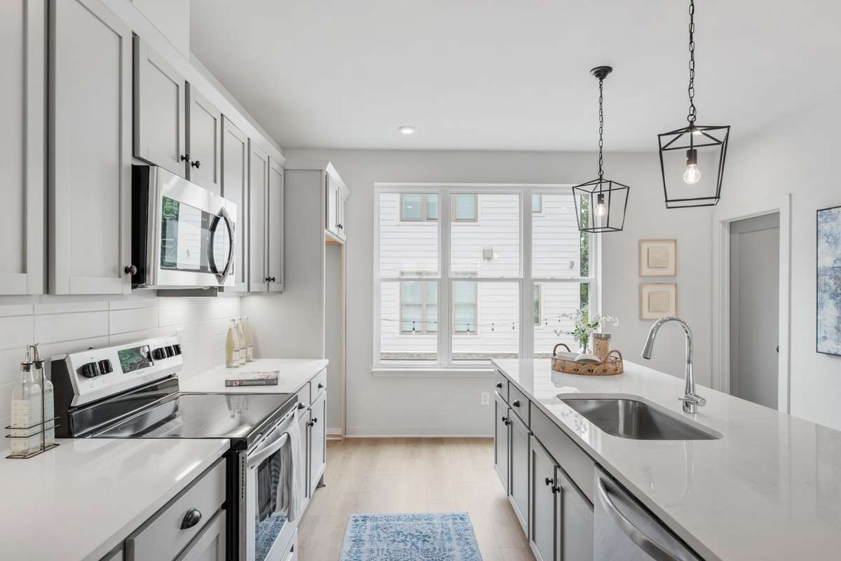Premium corner unit townhome with balcony overlooking the tree lined perimeter walking trail. Live Healthy and Live Smart at East End Village. Fenced front yard ( maintained by HOA) , soaring ceilings, exposed beams and an EV charger in the 2 car garage. East End Village is known for high quality, healthy and well built townhomes connected to the outdoors with walking trail, dog park, individual fenced yards and two water features - a fountain pond and swimming pool. The progressively designed homes feature upgraded insulation ( for comfort and sound control) , superior framing and high efficiency heat pump water heaters. Located in Inglewood off Broadmoor between Gallatin and Dickerson Rd with quick access to Ellington Pkwy. EEV offers convenience to many parts of Nashville while maintaining a sense of privacy and seclusion from any nearby traffic.
