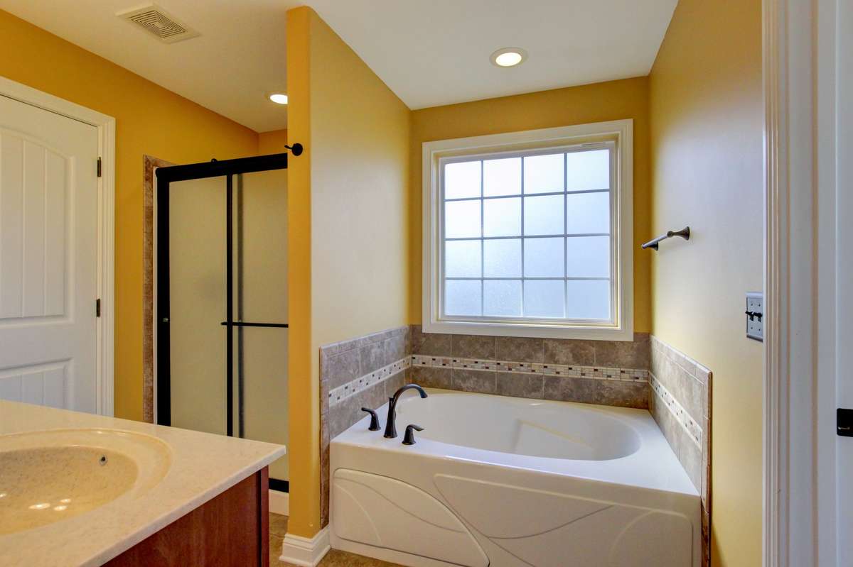 Step inside to find a formal dining room and living room featuring a natural gas fireplace. The primary suite offers dual sinks, a separate jetted tub and shower, and a spacious walk- in closet.