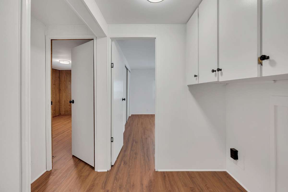 Hallway towards the back of the home with space for washer/dryer.