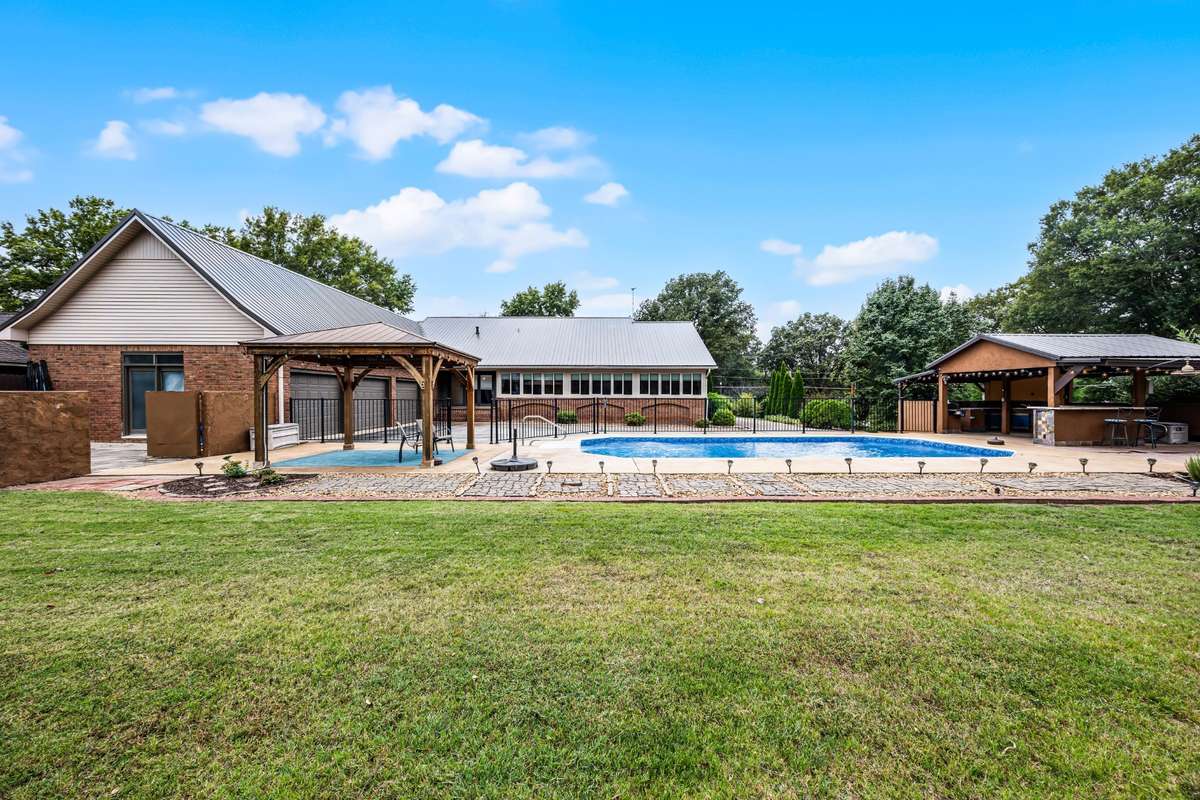 Discover your perfect sanctuary in this stunning and Renovated 1 owner 3010 sq ft ranch home. This Open Concept, accessible home features 3 oversized bedrooms and 2. 5 updated bathrooms. Home also features a bonus room/ office which could also be used as a 4th bedroom, as well as large sunroom overlooking relaxing backyard featuring an INGROUND POOL , gardens, and in ground irrigation! Sunroom could be used many ways including home gym and reading nook. Once you step inside from the front covered patio, a welcoming foyer leads to the open concept living space. For relaxation and entertainment, enjoy your private oasis with your backyard pool and soothing rock waterfall as well as a grill/ kitchen area. The updated living room features a brick fireplace with large area for TV above. This home caters to every lifestyle need. The covered patio invites you to unwind outdoors. With a 3 car garage, parking and storage will never be an issue. Located in the highly sought after subdivision of Hunter Chase, this home offers a perfect blend of luxury and comfort. No city taxes, well water, and less than a mile from the city center! Home has been extensively updated including crawlspace encapsulation!