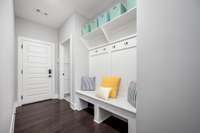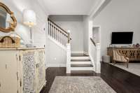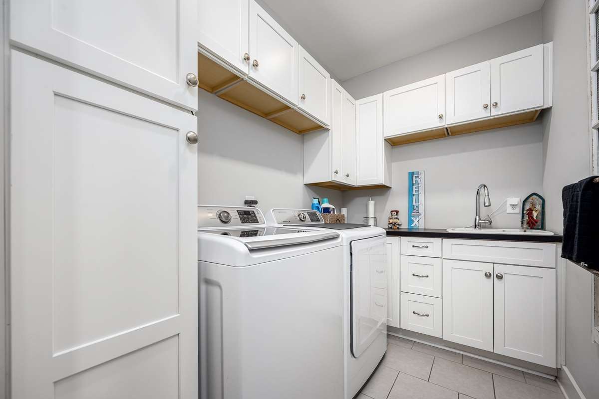 Inside, thoughtful upgrades make life easier—custom closets, a laundry room with cabinetry and a sink, and overhead storage in the garage already set up for you.