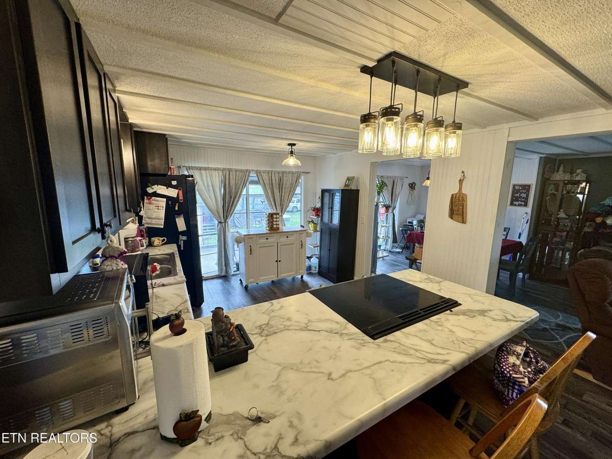 Unbelievable transformation . . tastefully and beautifully completed interior for an amazing modern look and feel... comfortable living, open concept... interior w/ upgraded floor covering, all interior walls & ceilings painted, new toilets in baths, some new windows in front, covered front & rear decks, , new deck railing on front, recent metal roof on home, garage & storage bldg. , new garage door, partially finished basement room w/ gas wall burner in place ( previously used for additional sleeping area) partially fenced back yard, detached garage w/ new overhead door & loft ( fully insulated for storage) , detached workshop/ storage bldg, In town for convenience to shopping, medical, dining, etc. Note: / Washer & Dryer, Refrigerator currently in house, and Dehumidifier do NOT convey Sellers will provide another refrigerator