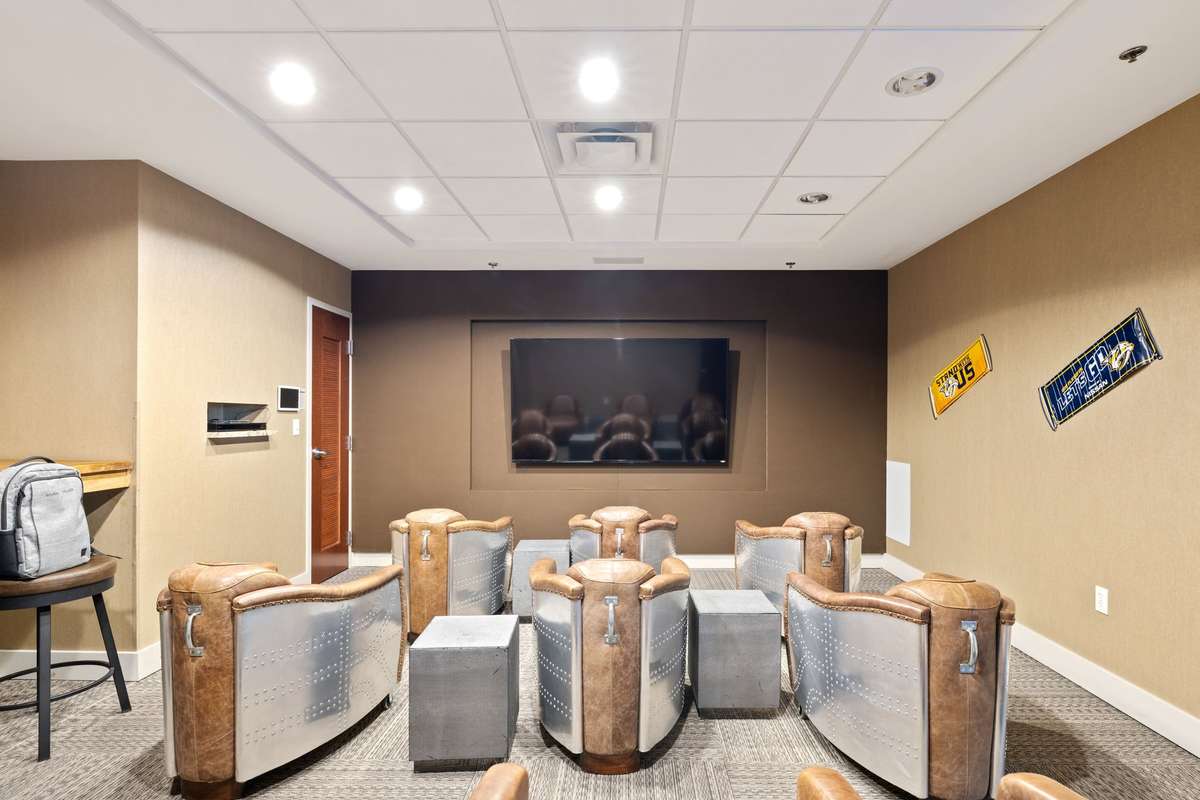 Tucked away at the end of the club is the private theatre room. Your access app (on your phone) automatically opens and unlocks all the doors. Just think of the Superbowl Parties or fun movie nights you could have here!