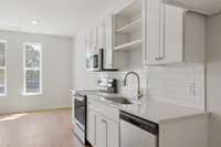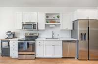 This condo conveys with an LG 2- in- 1 washer/ dryer, Samsung stainless steel refrigerator, and features a professionally installed sliding bedroom door, adding privacy while preserving the modern layout.