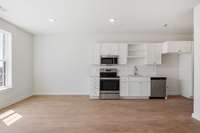 This amenity level corner unit boasts a bright, open floor plan with modern sleek finishes, and breathtaking downtown views.