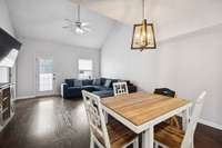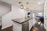 Upstairs, you’ll find two additional bedrooms and a large flex room ideal for an office, playroom, or media space. The primary suite offers double vanities and a tub shower combo. Enjoy added privacy as an end unit, along with a private patio and an attached one car garage plus additional driveway parking. The home also features a new roof installed in 2021, providing peace of mind for years to come.