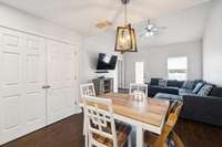Upstairs, you’ll find two additional bedrooms and a large flex room ideal for an office, playroom, or media space. The primary suite offers double vanities and a tub shower combo. Enjoy added privacy as an end unit, along with a private patio and an attached one car garage plus additional driveway parking. The home also features a new roof installed in 2021, providing peace of mind for years to come.
