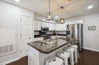 All kitchen appliances, along with the washer and dryer, will remain with the home and convey to the new owner.
