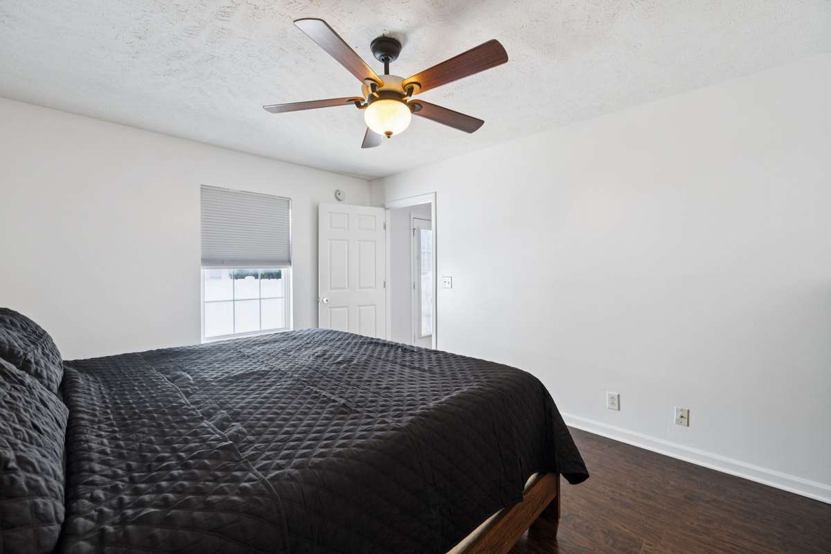 This move- in ready 4 bedroom 3 bathroom end unit in Florence Village offers a smart layout with two bedrooms on the main floor, perfect for guests or multigenerational living. Freshly painted and filled with natural light, the home features updated light fixtures, ceiling fans, and laminate flooring throughout the main level. The kitchen includes an island with storage, a breakfast bar, a pantry, and newer Samsung stainless steel appliances.