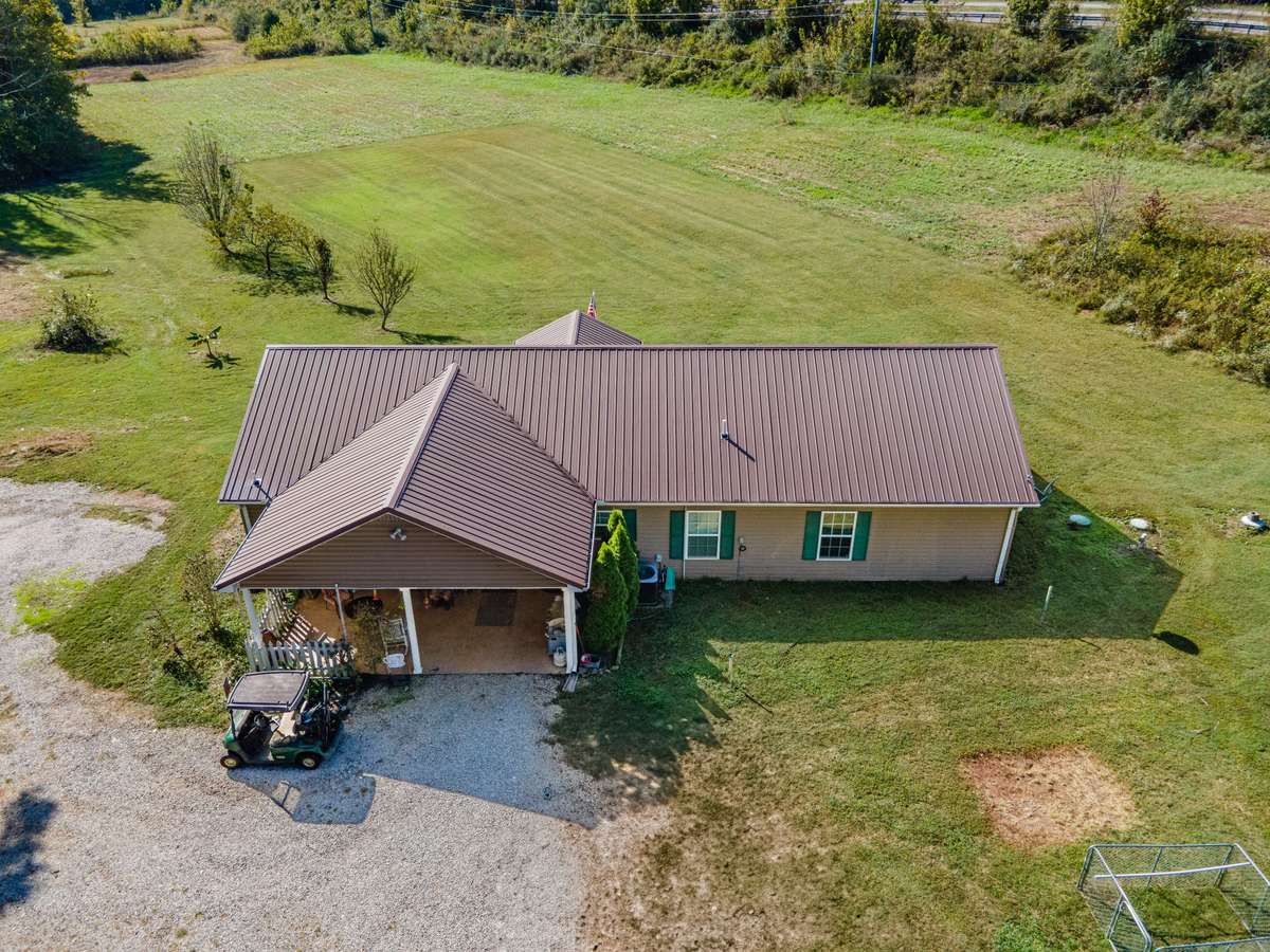 Here' s a great property for a small farm, ready and equipped with a barn, a 36x40 shop, plenty of land for your animals, a pond and a creek on 15+ acres! The home offers 3BD 2BA, kitchen has an abundance of cabinets, custom stamped concrete floors throughout, tiled shower in primary bath, garden tub, covered patio, covered porch, detached carport, safe room in primary bedroom and much more! Minutes to I- 65. Island does not remain. Call for a showing today!
