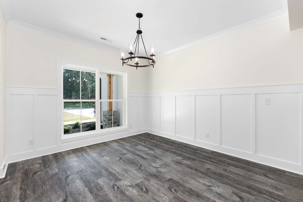 This 1, 789 sq. ft. custom home combines rustic charm with modern comforts of 1 Level Living. Featuring board and batten vinyl siding, cedar post columns, wood gable details and shutters, it sits gracefully on half an acre with curb appeal to spare including stacked stone foundation accents and column bases.