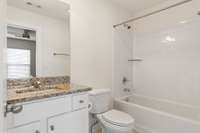 Retreat to the lavish primary suite, highlighted by soaring vaulted ceilings and thoughtfully designed his- and- hers closets, providing ample space for your wardrobe. The outdoor oasis awaits you with a private, fenced- in patio—perfect for intimate gatherings or tranquil evenings under the stars.