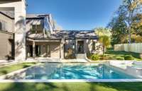 Welcome to this incredible new construction by esteemed local builder, Paros Group in collaboration with August House Co. , delivering a fresh expression of Scandinavian modern design in the coveted West Meade neighborhood on a 1 acre lot full of mature trees. With clean lines, natural materials, and warm minimalism at its core, this home offers a refined, light- filled retreat designed for modern living. Spanning 7, 274 square feet of interior space, with expansive covered outdoor living areas and a custom- designed heated pool, this home is the perfect balance of form, function, and elevated lifestyle. The 25+ foot vaulted living room, 8" white oak flooring through, and floor- to ceiling windows set the tone and flows effortlessly into a gourmet kitchen featuring a 48" gas range, oversized island, and dedicated prep kitchen with additional storage and workspace, ideal for entertaining or everyday function. Oversized sliding doors lead to a rear porch with fireplace, blending indoor and outdoor living beautifully. The main- level primary suite is a private retreat with a vaulted ceiling, spa- caliber bathroom, custom walk- in closet, and its own private office suite, perfect for working from home in peace and style. Additional highlights include a customizable bonus space, electrically and structurally equipped to serve as either a home gym or a future au pair suite, a club room just off the pool with a dedicated bath and wet bar. A must see!