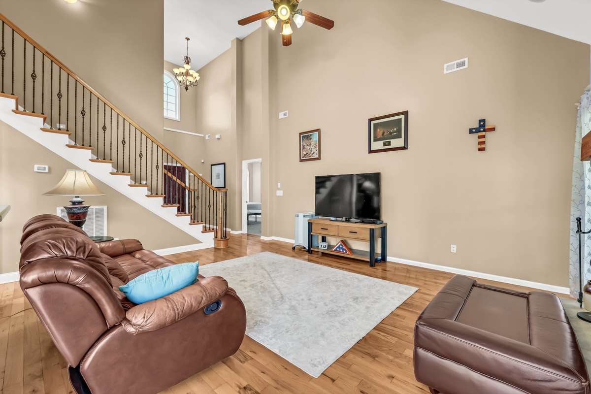 Gorgeous Home at the End of a Cul- De- Sac on 1. 19 Acres!! ! New Roof & Carpet ( Installed Last Year) ! Huge Fully Finished Sunroom w/ Floor To Ceiling Glass Walls & Large Gliding Windows! Hardwood Flooring Throughout Foyer, Living Room, Kitchen, Formal Dining Room & on the Stairs! Large Living Room w/ a Stone Fireplace & Vaulted Ceiling! Amazing Kitchen w/ Granite Tops, Bar Top w/ Lots of Seating Space, Large Breakfast Nook & a 4 Door Refrigerator & Range w/ a Double Oven! Formal Dining Room w/ Custom Trim! Primary Bedroom Features a Double Tray Ceiling, Crown Molding, 2 Walk- in Closets, Tile Shower, Jetted Tub, 2 Separate Vanities & a Toilet Closet! Spacious Guest Bedrooms- One could be a Bonus Room, One has Walk- in Attic Storage Space & Another has a Walk- in Closet! Laundry Room Features Custom Cabinet Lockers! HUGE Backyard w/ a Deck off the Sunroom, Shed & Mature Trees! A MUST SEE!
