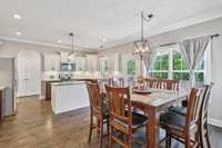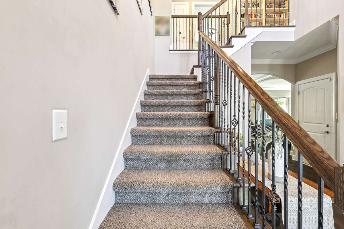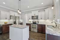 Upstairs, you' ll find all the bedrooms. Including the Primary Bedroom with private ensuite with a dual vanity, tile shower, soaking tub, and a massive walk- in closet with a built- in storage island. There are four more generously sized bedrooms and a well- appointed full bath with a dual vanity. Tons of extra closets and storage space are tucked away throughout the home.