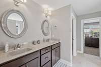 Upstairs, you' ll find all the bedrooms. Including the Primary Bedroom with private ensuite with a dual vanity, tile shower, soaking tub, and a massive walk- in closet with a built- in storage island. There are four more generously sized bedrooms and a well- appointed full bath with a dual vanity. Tons of extra closets and storage space are tucked away throughout the home.