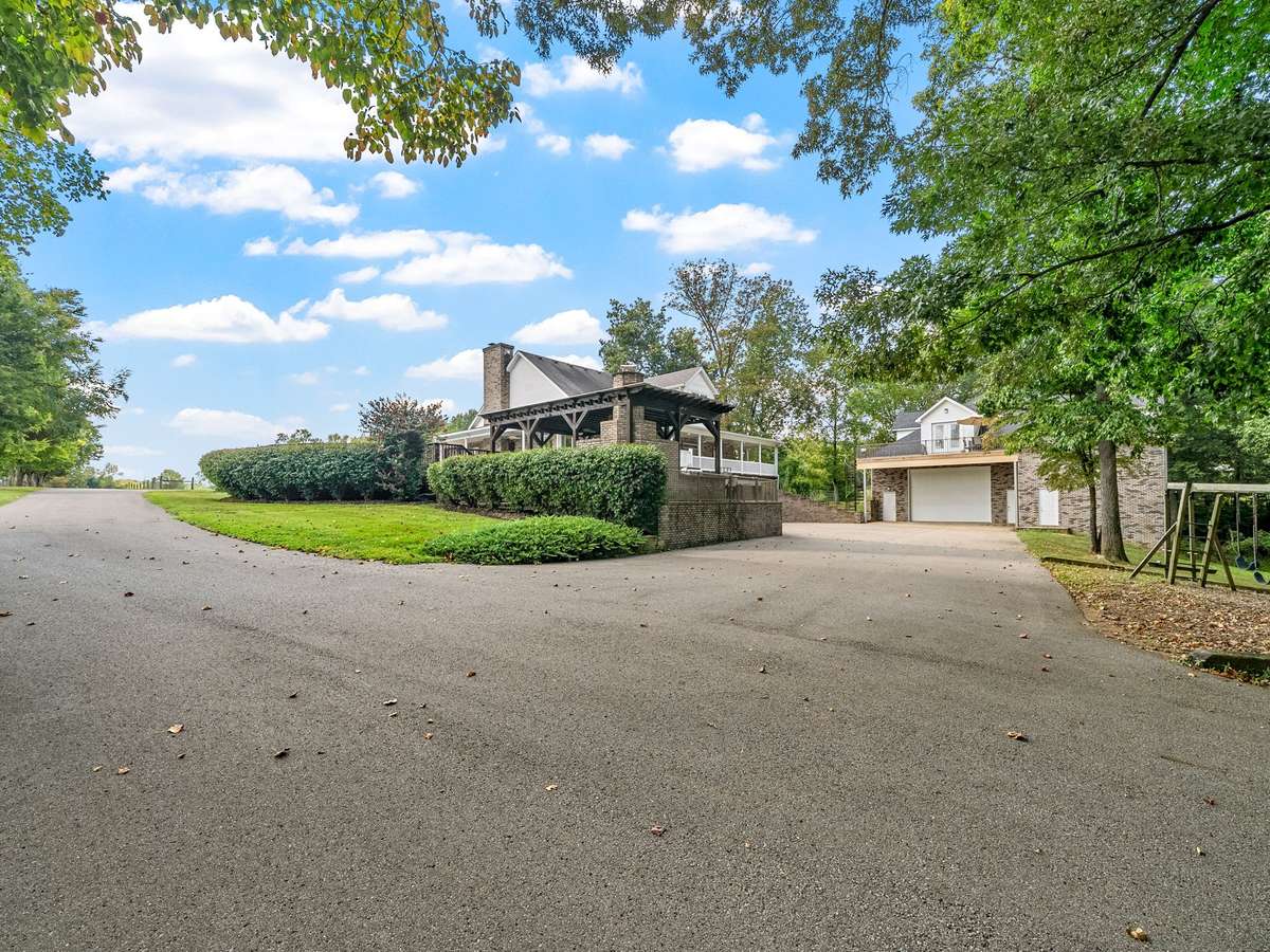 Another great view of the front of the home with a sneak peek at the detached RV garage in the back of the home.