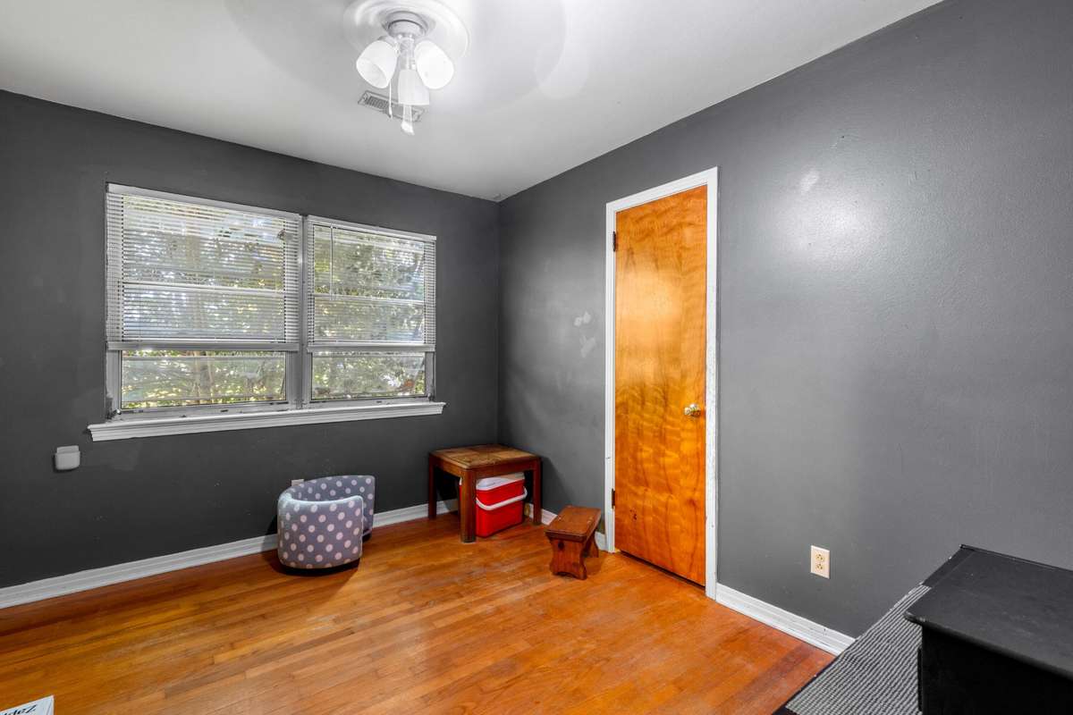 Step inside to find gleaming hardwood floors and an open floorplan that creates a bright, inviting atmosphere. The spacious living room is perfect for relaxing or entertaining, while the eat- in kitchen provides ample cabinetry and counter space for meal prep. The primary suite and two additional bedrooms are located on the main level, along with two full baths featuring classic tile details.