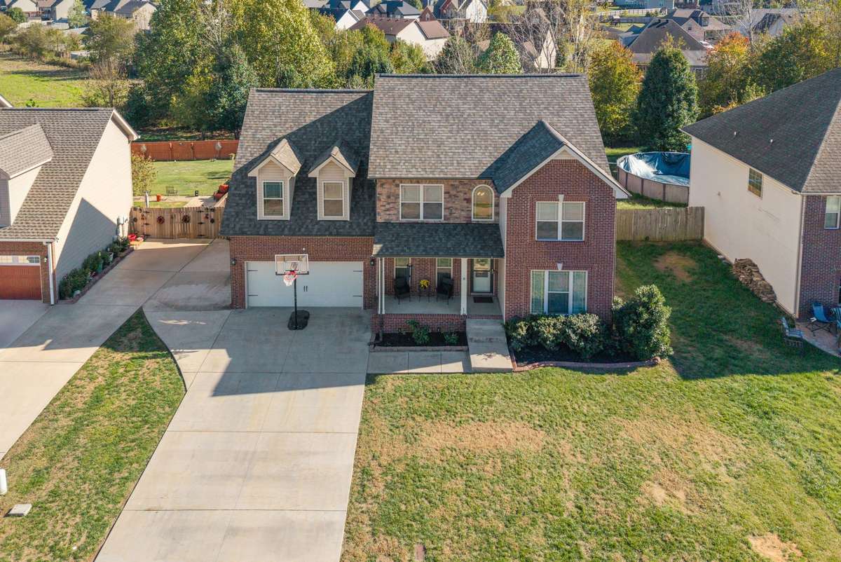 Get ready to fall in love with this show- stopping home just 5 miles to Fort Campbell — packed with custom upgrades, stylish finishes, and an outdoor oasis that’s made for entertaining! From the moment you arrive, the rocking chair front porch and quiet cul- de- sac lot create an inviting first impression. Step inside to discover a beautifully designed interior featuring updated lighting, accent feature walls, and thoughtful details throughout.