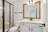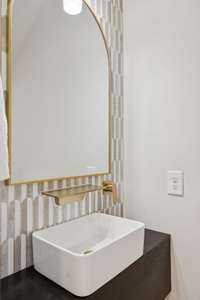 Don’t miss the designer powder bath—complete with custom tile, vanity, fixtures, and mirror that make it feel straight out of a boutique hotel.