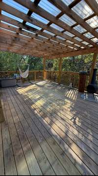 Covered 16x25 Deck with a View of the Back Yard and Trees Providing Privacy