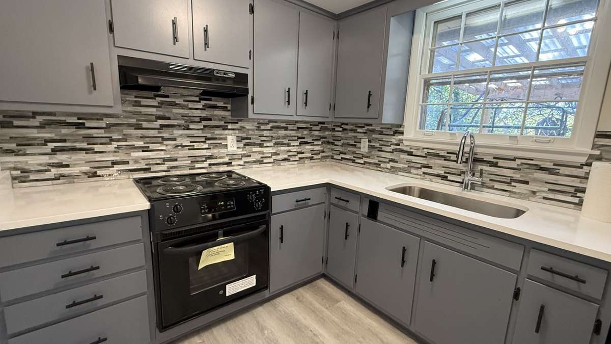 Kitchen with Granite Counter, Undermount Sink and New Flooring.